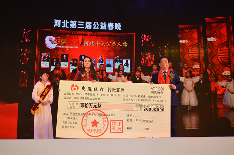 (王萬華董事長與河北省慈善聯合基金會宋靜華秘書長)